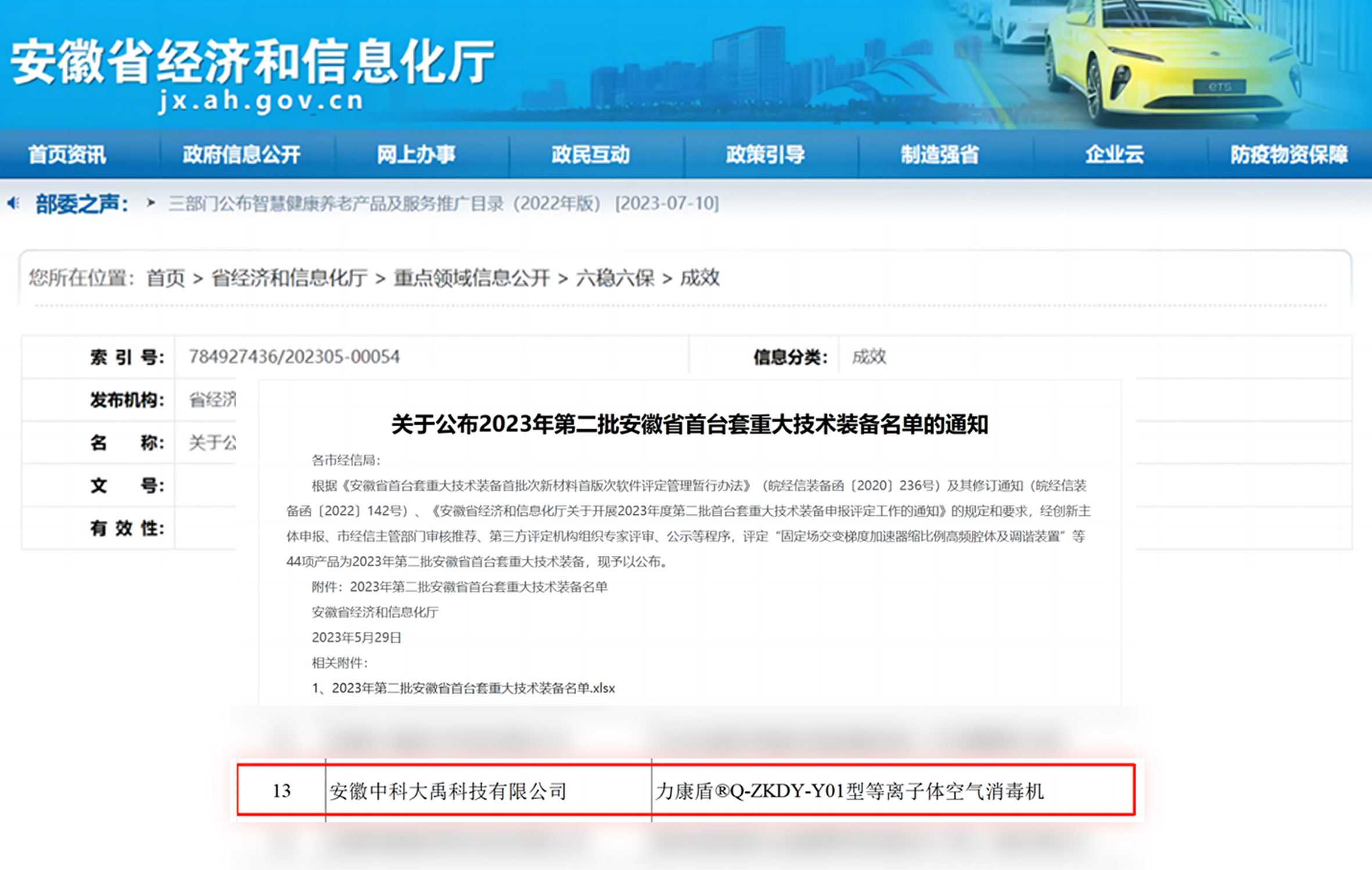 • 入選2023年第二批首臺(tái)套-力康盾?Q-ZKDY-Y01型等離子體空氣消毒機(jī)