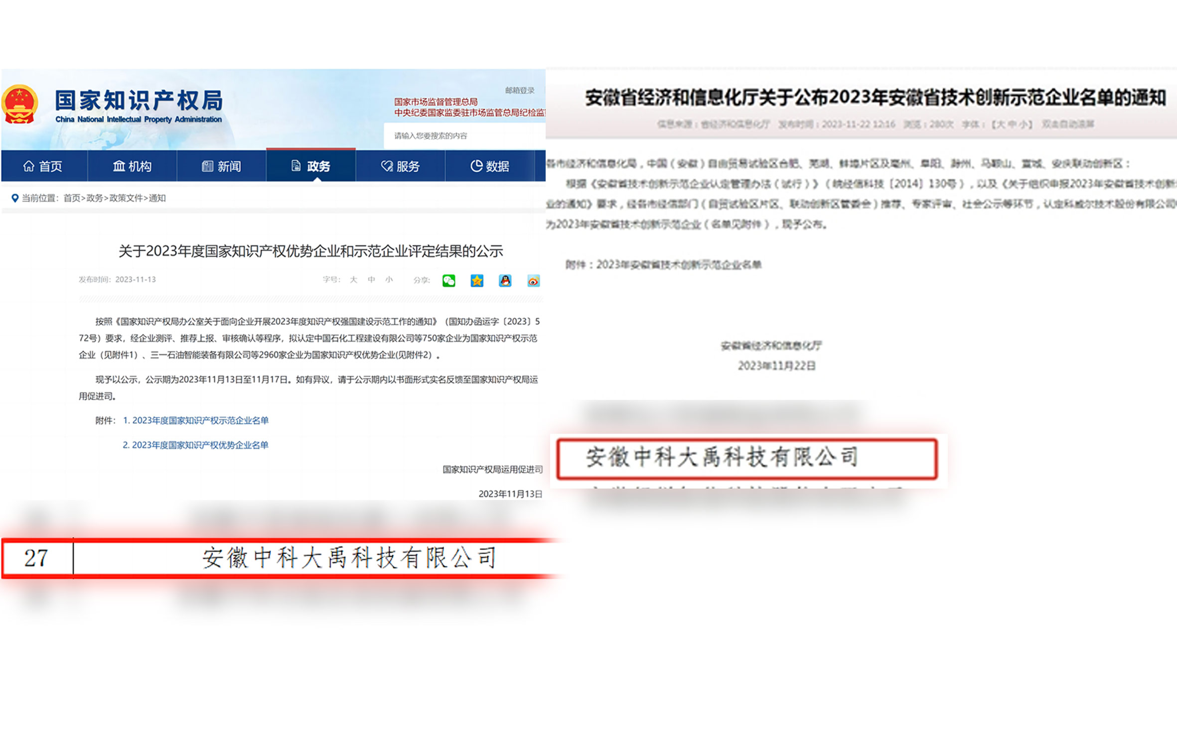 • 評(píng)定為2023年度國(guó)家知識(shí)產(chǎn)權(quán)優(yōu)勢(shì)企業(yè) 入選2023年安徽省技術(shù)創(chuàng)新示范企業(yè)名單
